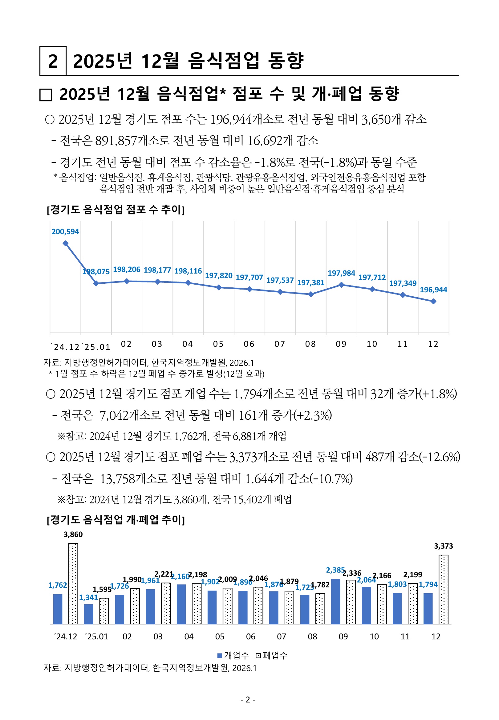 [월간 동향보고] 「2025년 12월 경기도 음식점업 소상공인 개·폐업 동향보고」